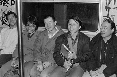 Within a few years – by 1987 – Ai is taking snapshots of his Chinese friends in various locales around the city, but most particularly the East Village. In Laundromats, in front of one of the infamous little clubs of those years – the Pyramid. And in subways. The viewer gradually realizes that we’re seeing a New York that no longer exists. A grubby, some would say ravaged, East Village – subway interiors scribbled with graffiti, homeless folks sleeping in doorways. One, called “Abandoned Building on the Lower East Side 1987 is a highly textured close-up of a front door with fallen bricks, graffiti scribbled walls, shattered glass and dogs standing in a open doorway implying squatters living in urban blight. There is a documentary value emerging from these photos as Ai’s focus shifts. His gaze now points outward. We are tracking his eye for details of the East Village of the 80’s which seemed to suffer the most from the city’s financial crisis of the 70’s, the scourge of drugs and derelict landlords.