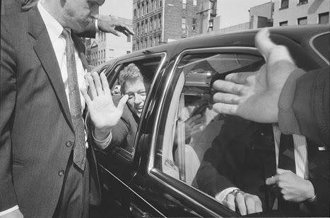 For my friend, Miriam Clifford, who has lived in Beijing for years, written a book on Chinese museums and introduced me to Three Shadows Gallery — designed by Ai Weiwei and publisher of this collection — the photo that stands out is the 1992 shot of Bill Clinton campaigning on the Lower East Side. He’s sitting in a car, face and hand waving out the window – at very close range to the camera. His hand is prominent as are the hands of other handlers around him…the focal lines created by the hands – an accident of close range action is potent. Clinton was not yet famous nor had he become president but Ai Weiwei was there, moving close in, recognizing the moment.