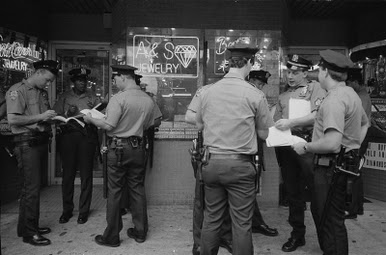 Clearly by the late 1980’s – five or six years after he began taking snapshots in New York, Weiwei’s eye is developing. He is more skilled with his camera. His social documentary sensibility is becoming more sophisticated. When discussing this with the Magnum photographer Susan Meiselas, she pointed to Ai’s 1989 photo of “Police Changing Shifts on the Bowery.” The framing of two clusters of police men and women – standing in front of a neon lit jewelry store, comparing notes on their paper work and filling out their ticket book – reflects a thought through moment, even if it’s a fast reaction. Ai is conscious of the significance. Composition, form, subject all work.