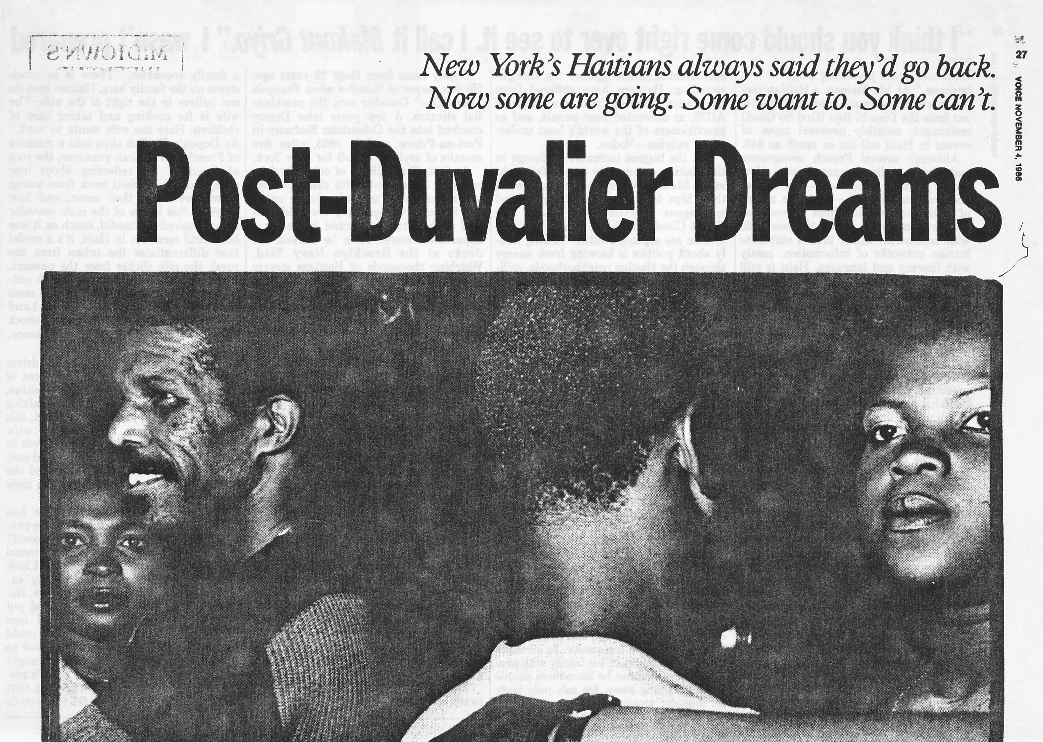 This existential question is buzzing the crowd at La Detente, a huge, middle-class Haitian restaurant and lounge in Jackson Heights, Queens. It’s Saturday night and the faint sounds of a restrained Cuban combo drift downstairs to a reception room filled with the cream of the Haitian professional class: doctors, lawyers, architects, engineers, social workers and community activists. Some of their wives in padded shoulders, carefully painted fingernails and perfectly groomed upsweeps feign the slightly bored visage of the upper-class Haitian lady. In this room, choking on the propriety of the Haitian bourgeoisie, we are waiting for the guest of honor, Jean Dupuy. Dupuy is going back.