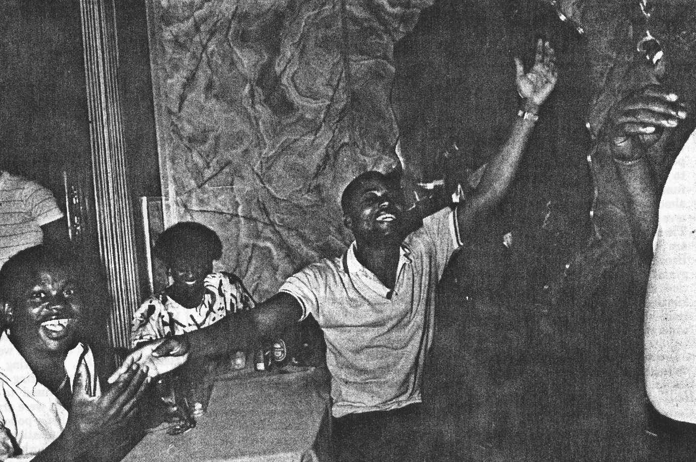 I can’t help thinking about the gaunt children and adults back in Haiti, the families dependent on the hard work of the people in this room. Yet the dances in Haiti, whether indoors or outdoors, are more vibrant, more fun, freer. And while our cheers for liberty come easy in this club, it’s the people back home who stood up and continue to stand up against guns. For the majority in Haiti, there was nothing left to lose. The majority in New York have a lot to lose by going back to devastated economy under a Duvalierist junta. Still, at Club Cenegal the postures, mannerisms, attitudes, the rum, the language and tempos that fill this room are all Haitian. One culture. Two worlds.