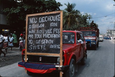 “I’ve got videotapes from Haiti,” Nicole oozed seduction through the receiver. Now I was disappointed. Several Haitian cab drivers around town had already offered me deals on video tapes of the demonstrations and celebrations after Jean-Claude Duvalier left. Since I had been in Haiti during that first post-Duvalier month, I was not too interested. But curious all the same.