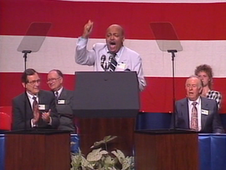 Finally, the President incumbent appeared, George Bush, Sr. “Hey this is non-political gathering so I won’t say anything political.” Then proceeded to talk about the need to strengthen our moral foundation and point out that the other party left “God” out of their platform.