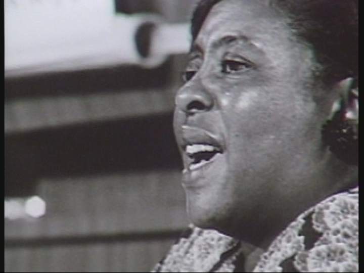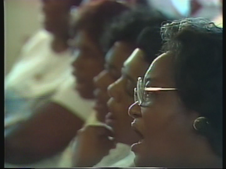 Archival footage from the early 1960s of communal singing during church meetings, on protest marches, in paddy wagons and in jail. Reagon talks about the significance of communal singing in the Civil Rights Movement.